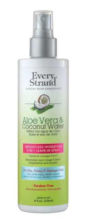 اسپری محافظ مو اوری استرند حاوی آلوئه ورا Every Strand Spray یک محصول کاربردی برای موهای خشک، وز و آسیب دیده ست. این محصول از موها در برابر حرارت سشوار و اتو مو محافظت کرده و موهایی براق و درخشان را به شما می بخشد. بخاطر داشتن آلوئه ورا و آب نارگیل در فرمولاسیون خود موها را آبرسانی کرده و وز مو را کاهش می دهد. همچنین موها را نرم و لطیف کرده و باعث تقویت و تغذیه بافت مو می شود. این محصول به عنوان یک حالت دهنده نیز قابل استفاده است. پارابن، روغن های معدنی و رنگ ندارد بنابراین باعث احیا و سلامتی مو می شود.